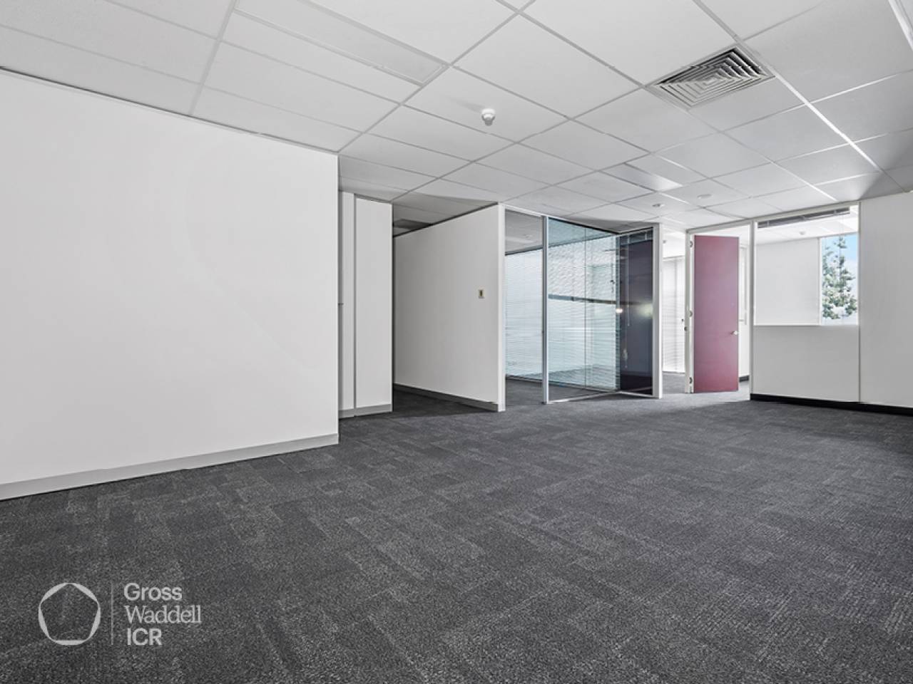 Internally, the suite provides an efficient layout with a generous open-plan work area complemented by three separate offices or meeting rooms, making it well suited to businesses that need a mix of collaboration space and privacy.