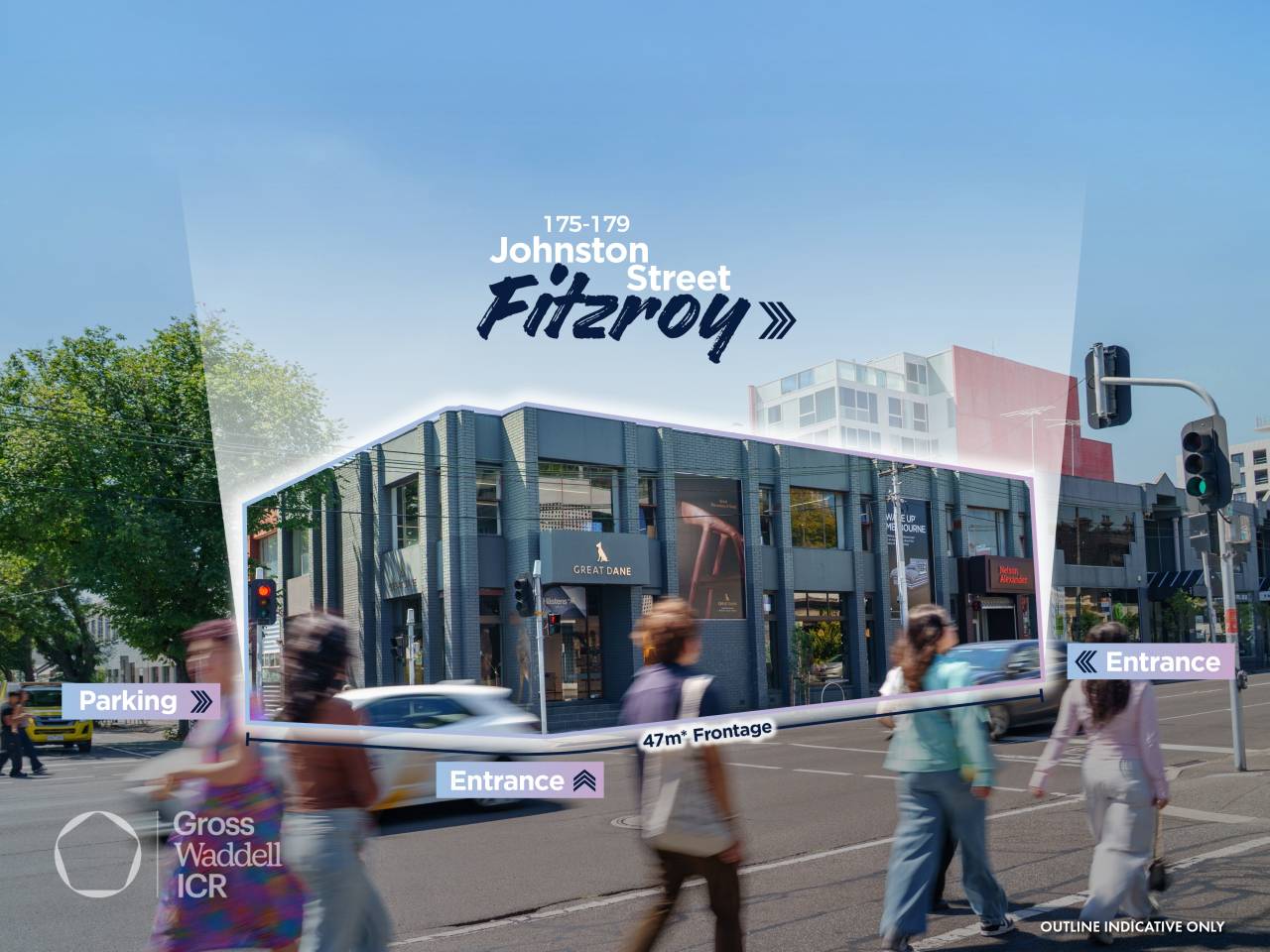Gross Waddell ICR is pleased to present for sale 175–179 Johnston Street, Fitzroy. Positioned on a commanding corner in the heart of Fitzroy, 175–179 Johnston Street presents an exceptional city-fringe investment opportunity, combining strong holding income with considerable future value-add or development potential (STCA).