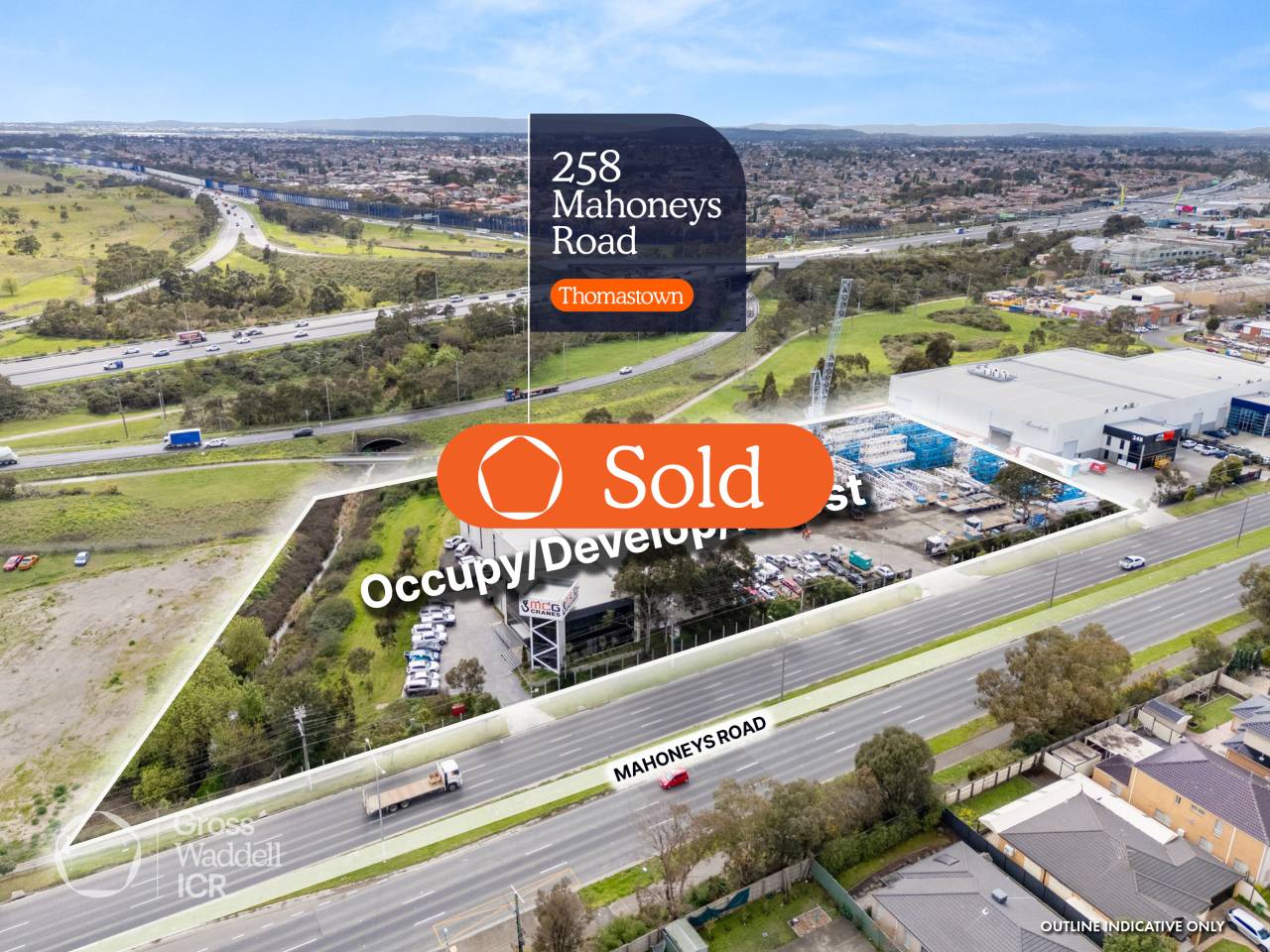 Gross Waddell ICR is pleased to present 258 Mahoneys Road, Thomastown for sale. An exceptionally rare 1.29 Ha* industrial landholding with substantial improvements & commanding approx. 183 m* frontage to Mahoneys Road.